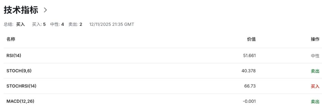从日线级别技术指标观察,澳币兑美元周三仍维持在布林带中轨与上轨之间运行,反映价格整体偏强。然而,布林带整体开口呈收窄状态,表明市场波动率尚未显著提升,汇价仍处于阶段性整理格局。若后续价格上行能伴随布林带开口同步扩张,则将确认上行动能的持续性与强度。目前布林带上轨位于0.6580区域构成短期动态阻力,下轨0.6460附近形成对应动态支撑,而中轨0.6510水平则可视为判断多空力量转换的关键枢轴点。动能指标方面,14日相对强弱指标(RSI)目前处于50中性水平附近,显示多空力量暂处于均衡状态,市场正面临短期方向选择。