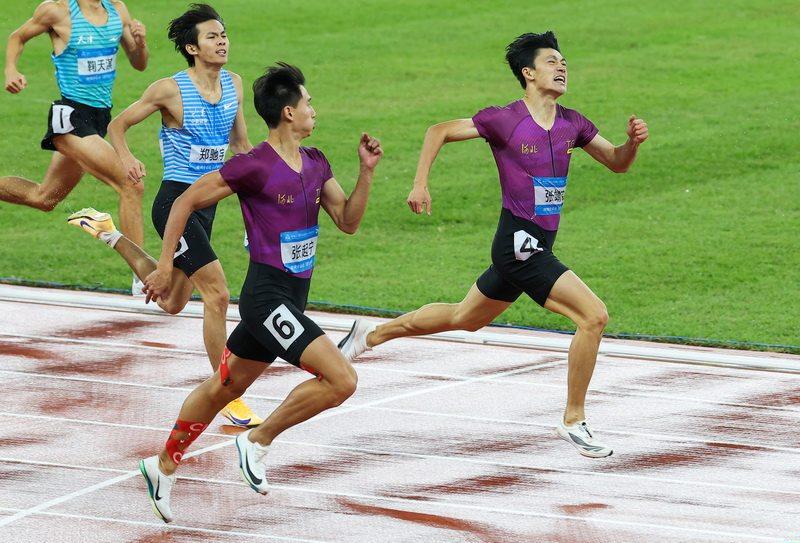 11月18日,河北运动员张靖宗(右一)、张起宁(右二)在男子400米决赛中。