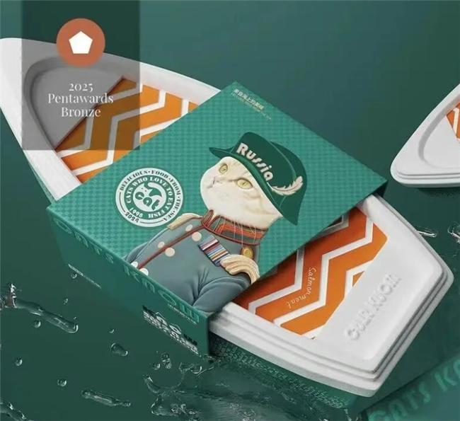 针对当前市场鱼肉罐头食品品牌设计差异化弱的现状,柏星龙设计团队打造了“猫知道”IP形象,巧妙地通过英文“know”的谐音,凸显鱼肉的鲜美品质。盒型创意仿照船只,通过船舱开窗露出鱼肉的设计方式,传达新鲜的鱼肉是现捕现捞现加工的理念。盒子侧面通过金属材质表现鱼鳞的质感,强化产品的海鲜属性,为消费者营造直观的触感体验,有效提升了产品的市场辨识度。