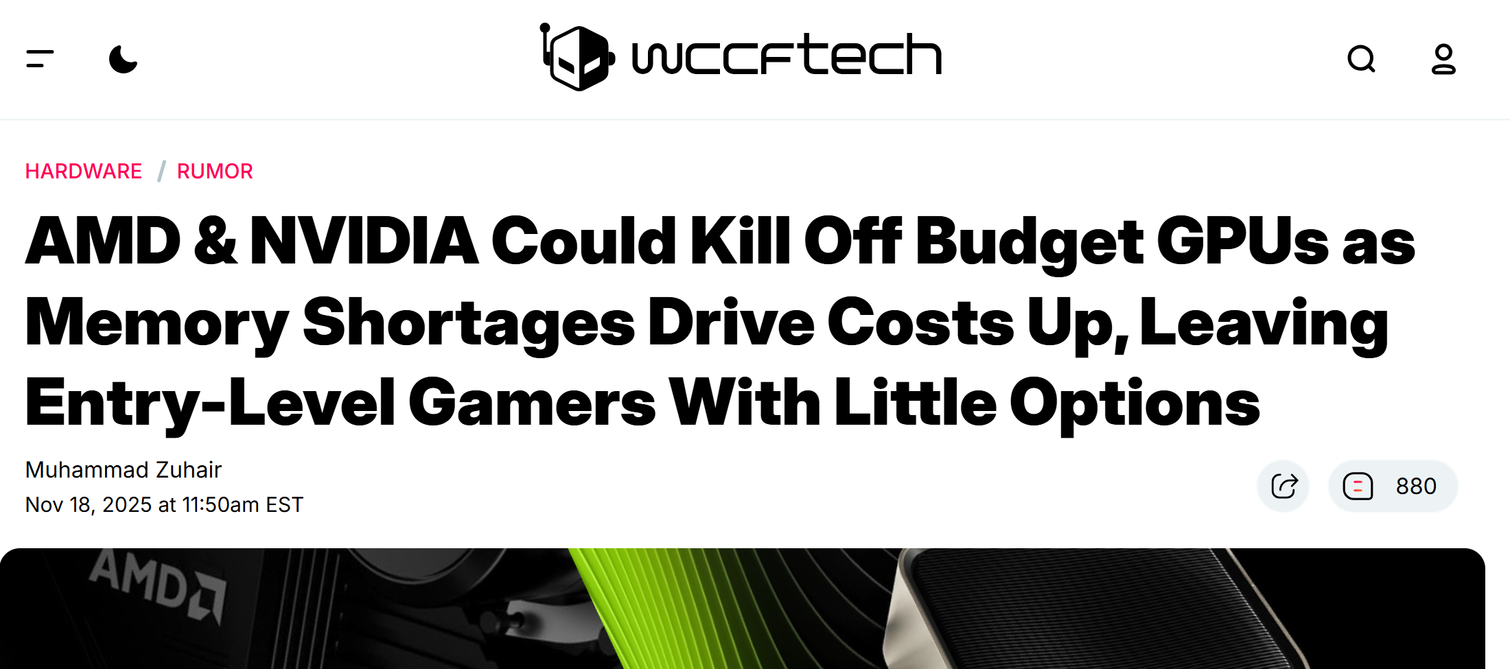 【环球网科技综合报道】11月20日消息,据科技媒体Wccftech报道,受全球DRAM内存供应短缺影响,GPU制造商英伟达与AMD正考虑暂停入门级及中端游戏显卡的生产计划,相关市场或面临供应调整与价格波动。