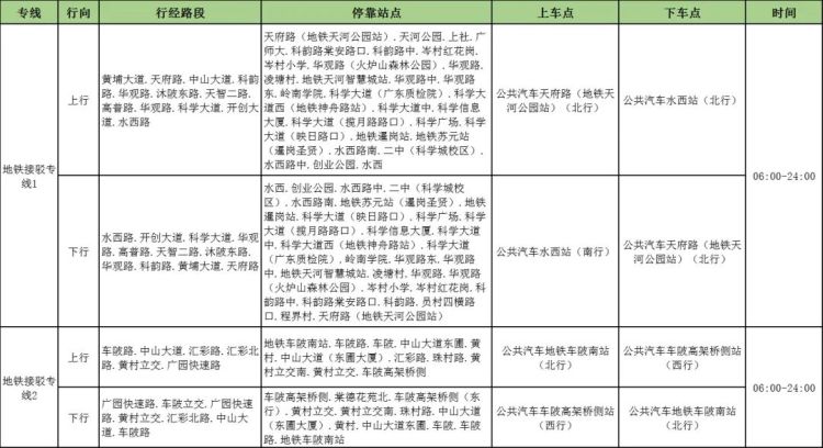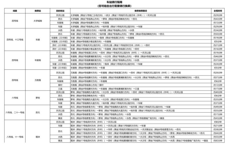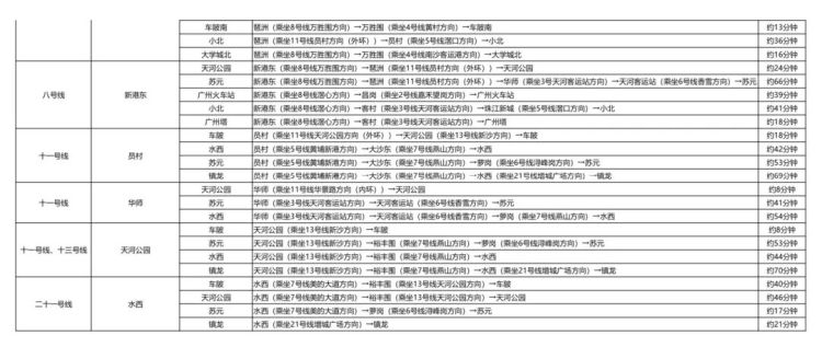 二十一号线天河公园、苏元站停止对外服务期间,因车站部分出入口通道、站厅、站台等区域将实施围蔽,十一、十三号线天河公园站及六号线苏元站无法换乘二十一号线。同时,二十一号线水西至增城广场区段正常运营,全天开行普通车。