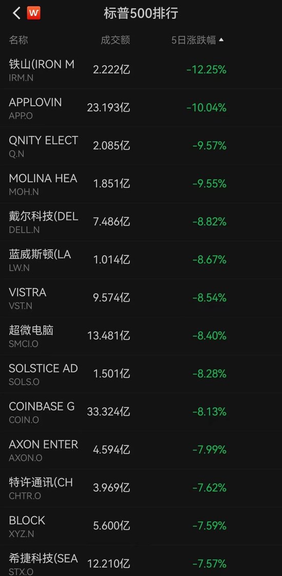 二是买了一些细价股或妖股,甚至一些币圈的小币股,随着美股AI泡沫担忧以及降息预期下降,流动性危机之下,小型股很容易暴雷,就上周五单日跌幅超30%的就有一堆。