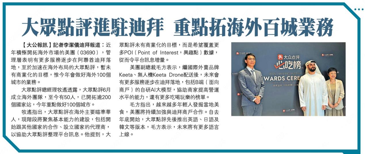 《大公报》称,美团副总裁毛方在发布会上强调:“我们将通过自研B端大模型,建设更完善的信息校准机制,确保线下商家客观信息准确及时。”这些举措将进一步提升“必吃榜”在全球范围内的服务能力和影响力。