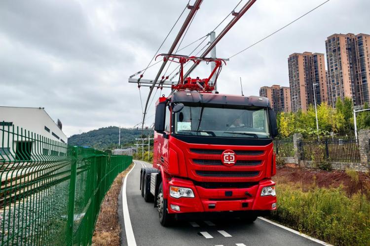 “辫子重卡”运行使用清洁电力,车辆受电弓在线取电,续航不受电池容量限制。这种新型交通运输系统,适合在风力发电、光伏发电富集地区用于公路、矿山重载货物运输,对促进物流绿色转型发展具有积极意义。